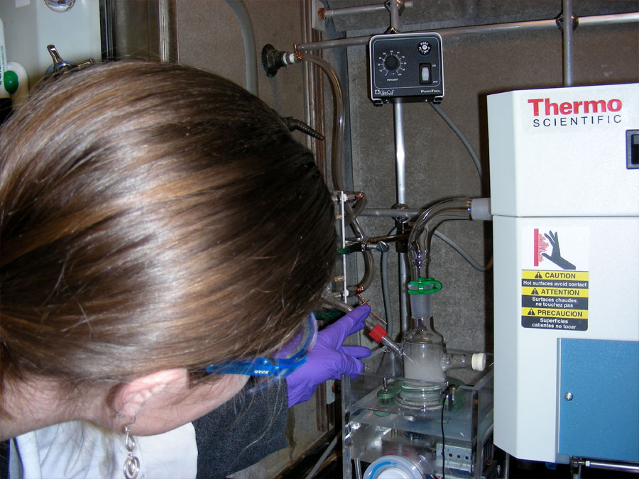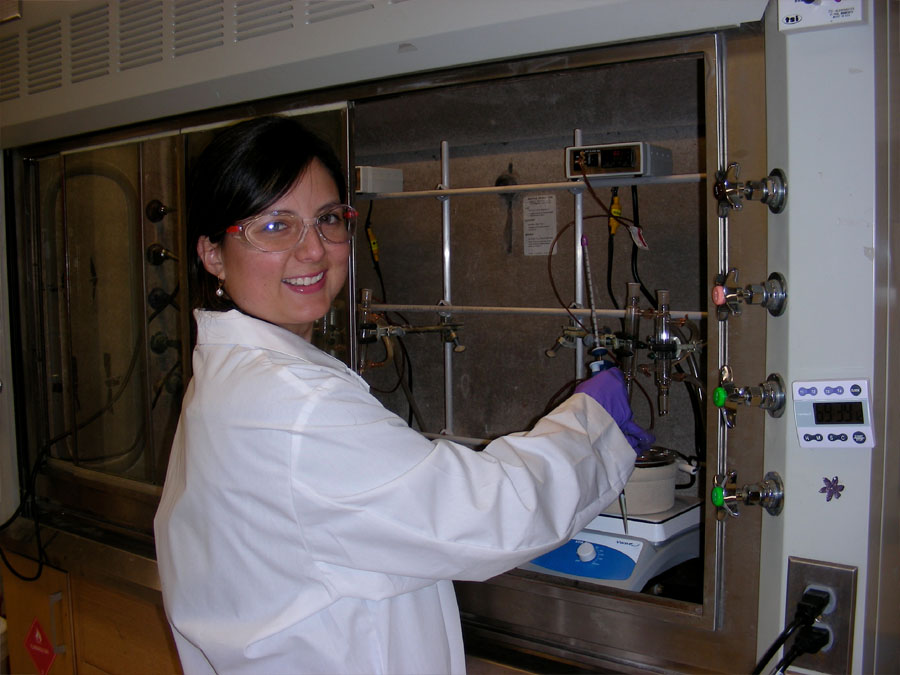Graduate student Nancy Ortiz and Professor Skrabalak conduct their first set of experiments at the APS